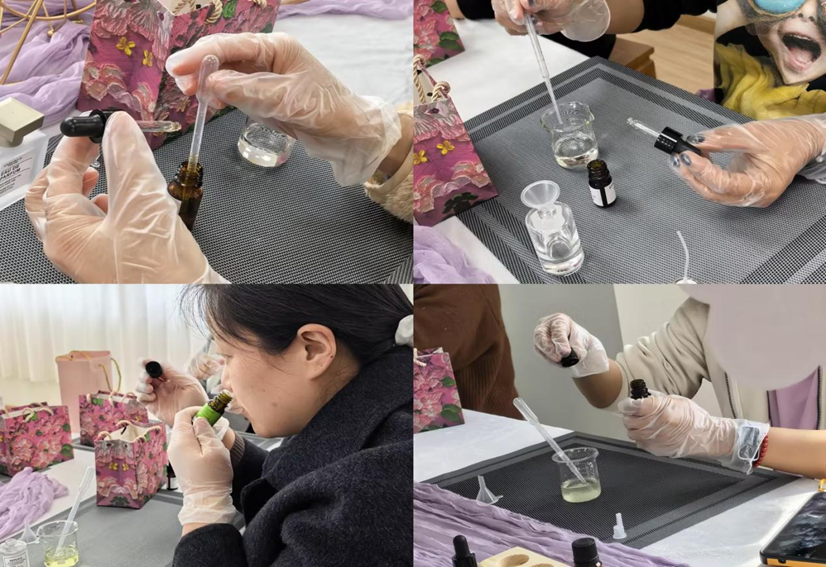 3月24日,调香沙龙活动接续开展。在舒缓治愈的氛围中,专业调香师带领大家探秘香氛世界,细致讲解了香水前调、中调、后调的层次变化,普及天然精油的特性与科学搭配技巧。老师们沉浸于闻香、辨香、配比、调和的过程中,通过滴液、搅拌、装瓶等步骤,亲手打造出独一无二的香水作品,在香气萦绕中放松身心、舒缓压力,邂逅独属于自己的芬芳美好,尽享惬意悠然的慢时光。