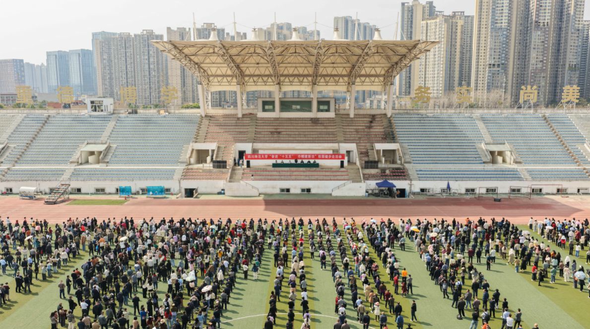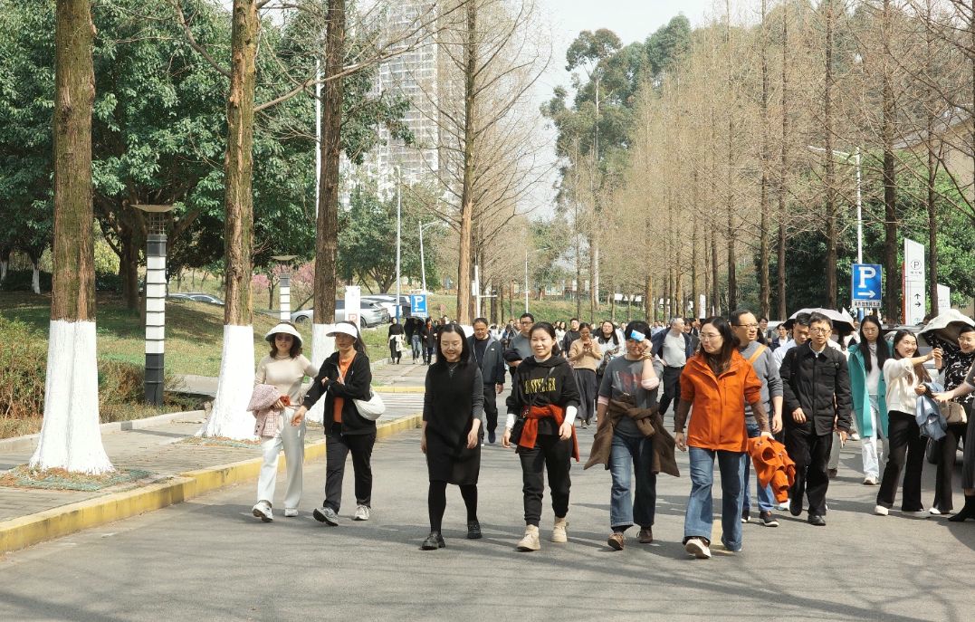 郭朝辉回顾了健步走活动连续举办十六年的传统,鼓励大家在春光中舒展身心、增进情谊,以更饱满的热情投身学校“十五五”高质量发展建设。活动现场,全体教职工齐声合唱校歌,歌声激扬,展现出迎接建校80周年的昂扬风貌。在热烈的掌声中,郭勇宣布活动正式开始。