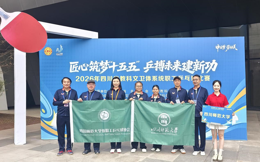 近日,“中国梦 劳动美——匠心筑梦展风采 乒搏未来建新功”2026年首届四川省教科文卫体系统职工乒乓球比赛在宜宾市南溪区圆满落幕。四川师范大学校工会精心组织教职工乒乓球协会骨干教师组队参赛,校工会副主席李燕担任领队,与来自全省各地教育、科研、文化、卫生、体育系统的乒乓健儿同台竞技、切磋交流,充分展现了川师大教职工昂扬向上、团结奋进的精神风貌。